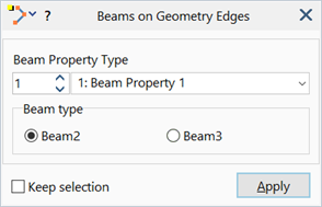 If set, inserts Beam3 elements. The third node will lie on the geometry edge, half way between the beam ends.