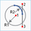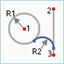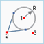 Creates a circular arc or full circle of radius R2 tangent to an outer circle and a line passing through P2 and P3. The outer circle is of radius R1, centred at P1, and lies on the plane defined by P1, P2 and P3.