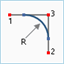 Creates a circular arc of radius R2 between a circle and a line passing through points P2 and P3. The circle is centred at point P1 with radius R1, and lies on the plane defined by points P1, P2 and P3.