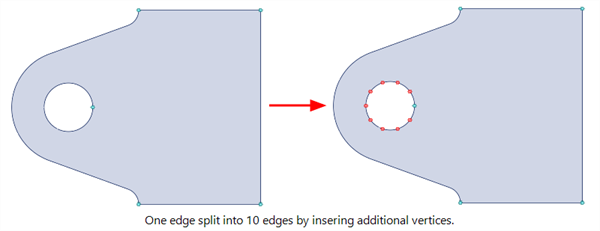 Divides selected edges by inserting intermediate vertices. An edge then becomes multiple edges.